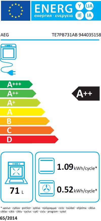 AEG 7000 MealAssist Pyrolytic Built-In Oven, TE7PB731AB – Black, 71L, A++ Rated