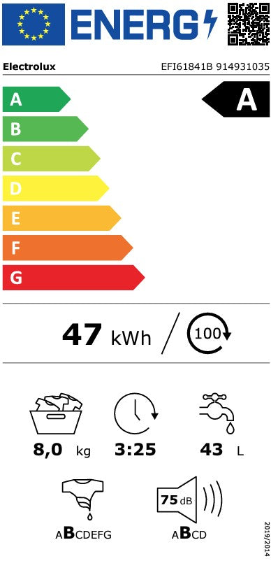 ELECTROLUX 8KG 1400 RPM WASHING MACHINE A ENERGY W | EFI61841B