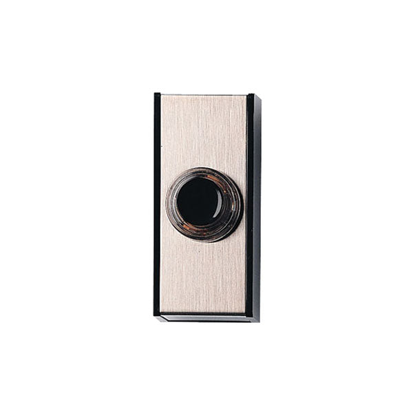 An aluminium button push with black edge and button