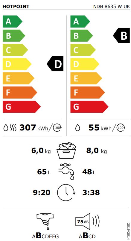 - Energy Rating: D (Wash & Dry) / B (Wash only)