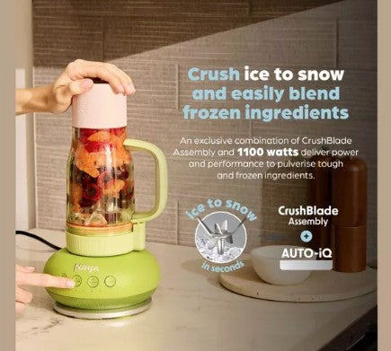 Blend powerful smoothies, shakes and frozen drinks in seconds with the Ninja BlendBOSS Personal Blender. Featuring a high-performance 1100W motor, this compact single-serve blender easily crushes ice, frozen fruit and tough ingredients for smooth, delicious results every time. Blend directly in the 710ml travel tumbler, attach the leak-proof lid and enjoy your drink on the go.