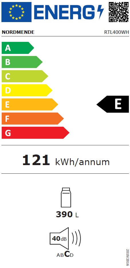 NordMende RTL400WH 60cm Tall Larder Fridge – White | 390L