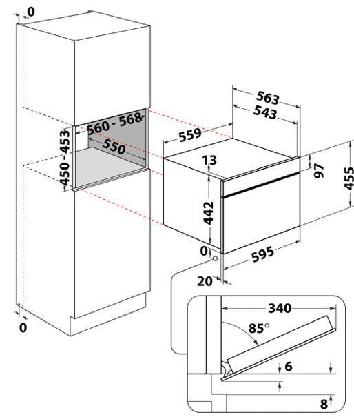 - Niche Dimensions (HxWxD): 450–453 × 560–568 × 550 mm