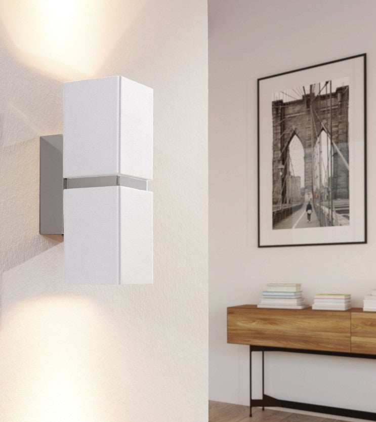 Eglo 95377 PASSA Wall Light – GU10 | Chrome & White | Modern Uplighter/Downlighter